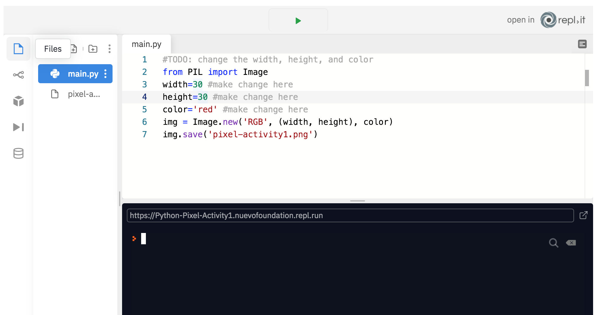 In order to see your image, please click on top left corner (which says ‘Files’), and then click on the image file to see the result.